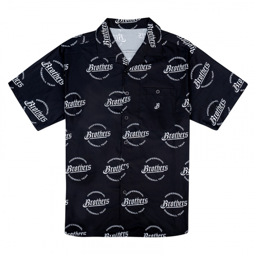 古巴領美式LOGO滿版襯衫-黑